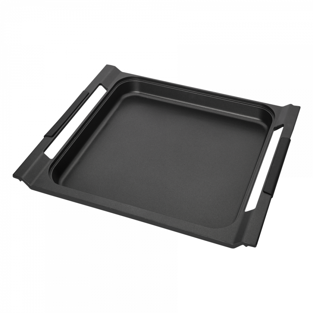 Приготавливаемые продукты обжариваются на противне прямо на индукционной варочной панели, а затем помещаются в духовой шкаф без необходимости перекладывания в другую посуду.