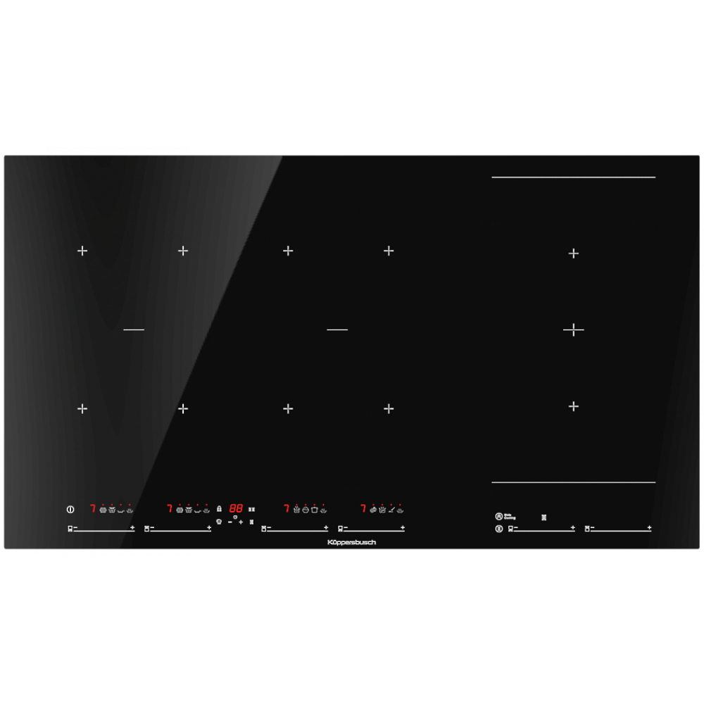 10-ступенчатая регулировка мощности glideControl+ (включая boost) с красными индикаторами10 специальных ступеней: ступень плавления, ступень поддержания тепла, ступень приготовления пасты, ступень варки в кипятке, ступень выпаривания, ступень приготовления риса, ступень быстрого закипания, ступень глубокой прожарки, ступень для жарки, ступень для гриляФункция объединения ближней и дальней варочных зон в однуУправление мощностьюИндикация остаточного теплаТаймер с функцией отключенияЦентрализованное отключениеПринудительное отключение (ограничение продолжительности работы)
